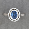 BIRKS SAPPHIRE DIAMOND DOUBLE HALO RING 18K WHITE GOLD