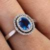 BIRKS SAPPHIRE DIAMOND DOUBLE HALO RING 18K WHITE GOLD1 OVAL SAPPHIRE ~ 0.80CTSBRILLIANT DIAMONDS ~ 0.25CTW EF COLOR / VS - SI CLARITYSIZE 6 WITH SPRING FIT - SIZABLE