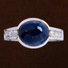 CABOCHON SAPPHIRE DIAMOND RING 18K WHITE GOLDCABOCHON SAPPHIRE ~ 6.0CTS (11.03X9X5.6)6 DIAMONDS ~ 0.45CTW IJ / SI - ISTAMPED 18K 750 AJD "American Jewelry Design"SIZE 8 - SIZABLE