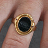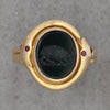 VICTORIAN OUROBOROS SNAKE SIGNET RING 18K YELLOW GOLDCARVED INTAGLIO BLOODSTONE4 RUBY EYESENGLISHSIZE 8 - SIZABLE